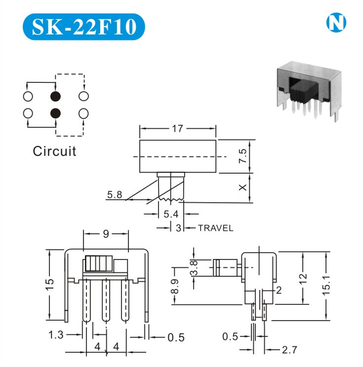 SK-22F10 詳細(xì)資料 產(chǎn)品說明: 技術(shù)指標(biāo): 使用溫度范圍 -20~+70℃ 耐壓 AC250V(50Hz)/min 額定負(fù)荷 DC 50V 0.5A 動(dòng)作力 250±100gf 接觸電阻 ≤0.05Ω 機(jī)械壽命 10000次 絕緣電阻 ≥100MΩ