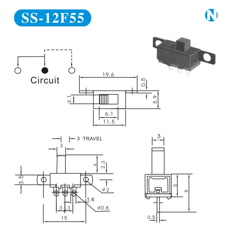 SS-12F55 詳細資料 產品說明: 技術指標: 使用溫度范圍 -20~+70℃ 耐壓 AC250V(50Hz)/min 額定負荷 DC 50V 0.5A 動作力 250±100gf 接觸電阻 ≤0.05Ω 機械壽命 10000次 絕緣電阻 ≥100MΩ