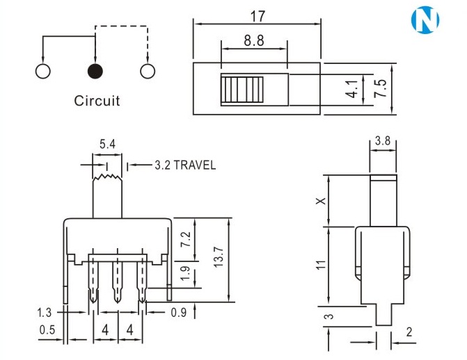 SS-12F04 詳細資料 產品說明: 技術指標: 使用溫度范圍 -20~+70℃ 耐壓 AC250V(50Hz)/min 額定負荷 DC 50V 0.5A 動作力 250±100gf 接觸電阻 ≤0.05Ω 機械壽命 10000次 絕緣電阻 ≥100MΩ