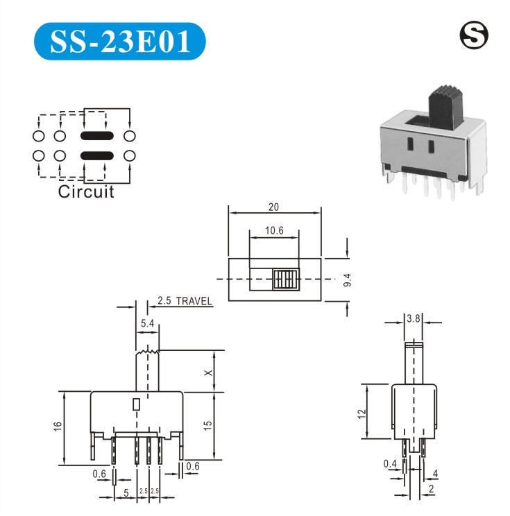 SS-23E01 詳細資料 產(chǎn)品說明: 技術指標: 使用溫度范圍 -20~+70℃ 耐壓 AC250V(50Hz)/min 額定負荷 DC 50V 0.5A 動作力 250±100gf 接觸電阻 ≤0.05Ω 機械壽命 10000次 絕緣電阻 ≥100MΩ