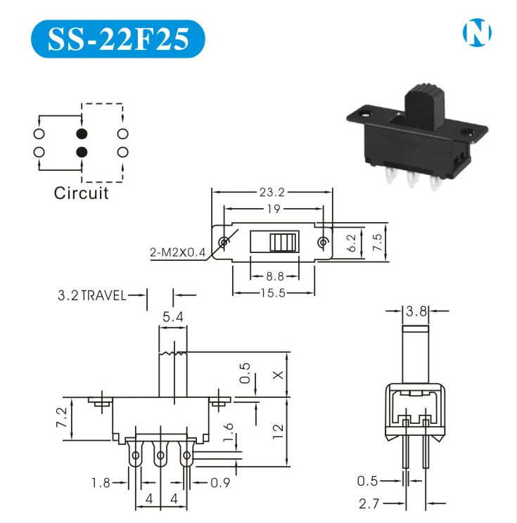 SS-22F25 詳細資料 產品說明: 技術指標: 使用溫度范圍 -20~+70℃ 耐壓 AC250V(50Hz)/min 額定負荷 DC 50V 0.5A 動作力 250±100gf 接觸電阻 ≤0.05Ω 機械壽命 10000次 絕緣電阻 ≥100MΩ