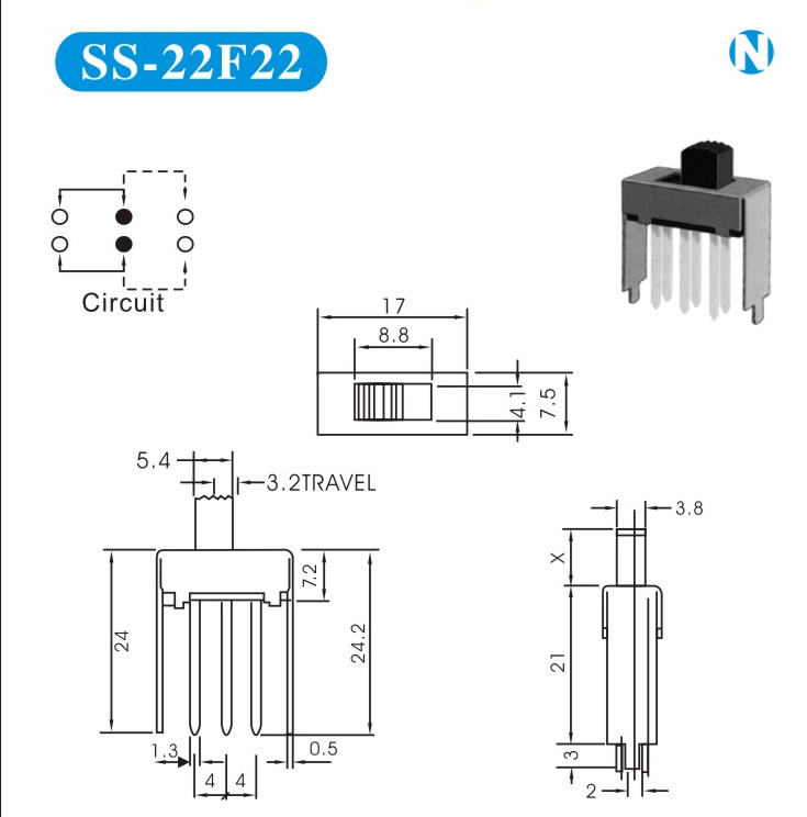 SS-22F22 詳細資料 產品說明: 技術指標: 使用溫度范圍 -20~+70℃ 耐壓 AC250V(50Hz)/min 額定負荷 DC 50V 0.5A 動作力 250±100gf 接觸電阻 ≤0.05Ω 機械壽命 10000次 絕緣電阻 ≥100MΩ