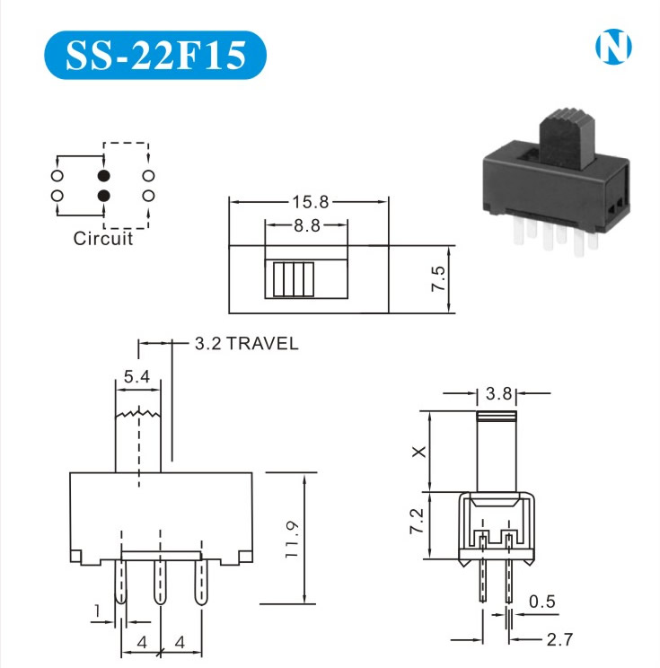 SS-22F15 詳細資料 產品說明: 技術指標: 使用溫度范圍 -20~+70℃ 耐壓 AC250V(50Hz)/min 額定負荷 DC 50V 0.5A 動作力 250±100gf 接觸電阻 ≤0.05Ω 機械壽命 10000次 絕緣電阻 ≥100MΩ