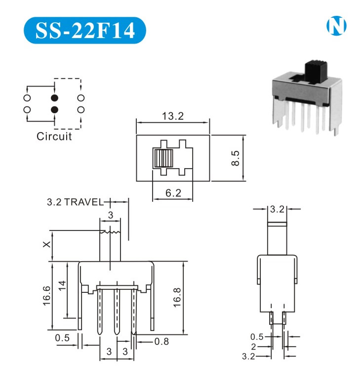 SS-22F14 詳細資料 產品說明: 技術指標: 使用溫度范圍 -20~+70℃ 耐壓 AC250V(50Hz)/min 額定負荷 DC 50V 0.5A 動作力 250±100gf 接觸電阻 ≤0.05Ω 機械壽命 10000次 絕緣電阻 ≥100MΩ