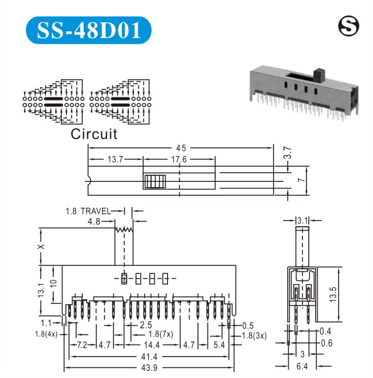 額定負(fù)荷 DC 50V  0.5A 動(dòng)作力 250±100gf