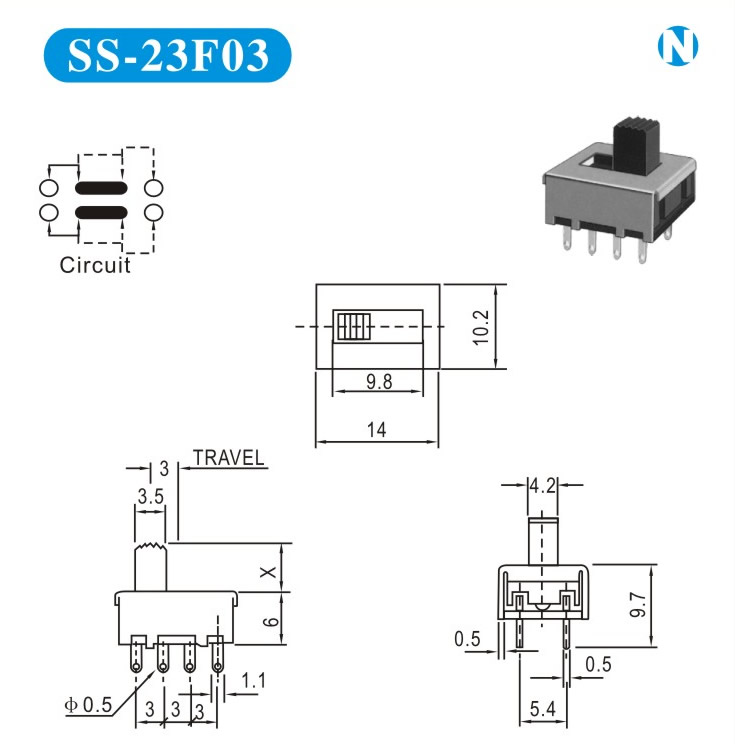SS-23F03 詳細資料 產品說明: 技術指標: 使用溫度范圍 -20~+70℃ 耐壓 AC250V(50Hz)/min 額定負荷 DC 50V 0.5A 動作力 250±100gf 接觸電阻 ≤0.05Ω 機械壽命 10000次 絕緣電阻 ≥100MΩ